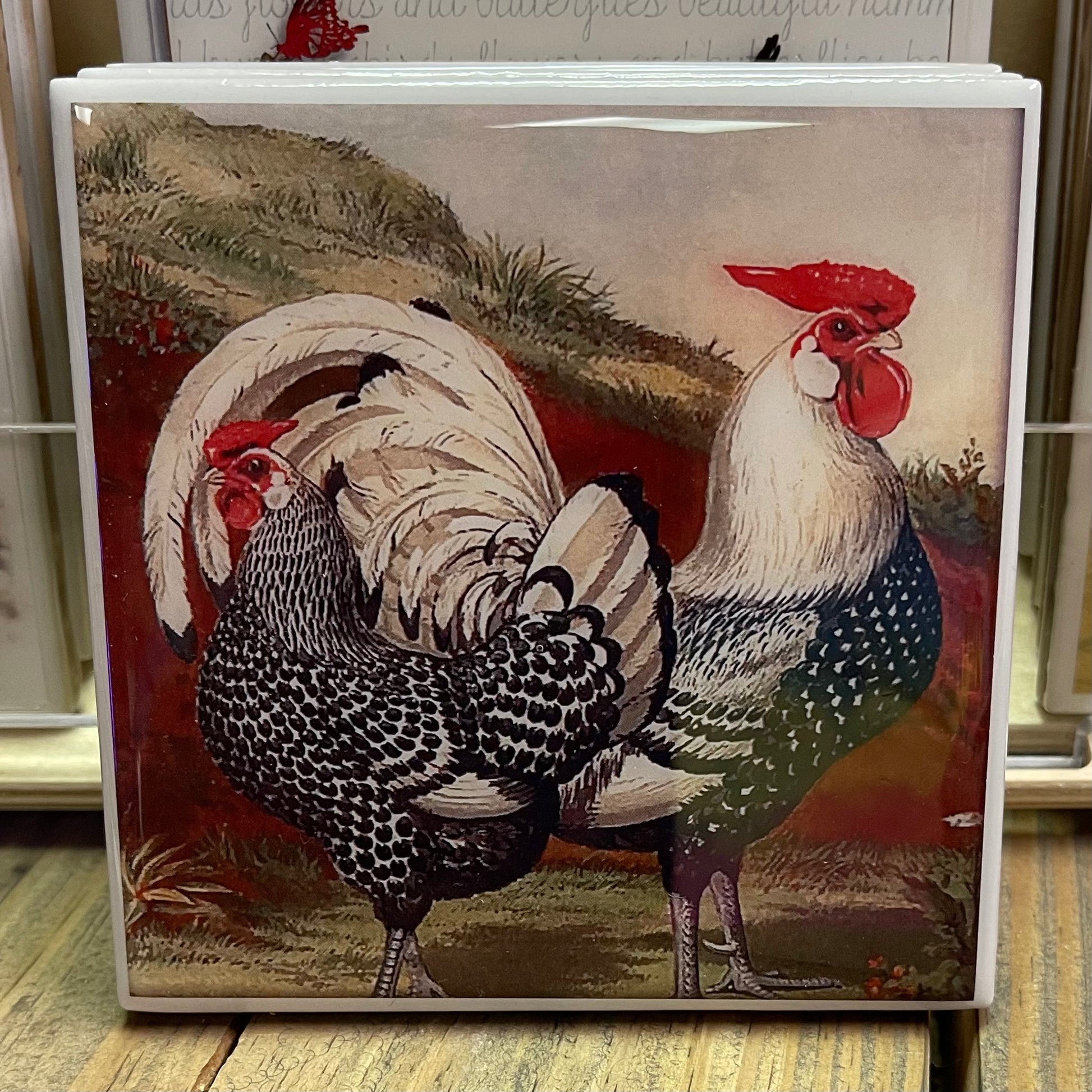 These hand made art tiles can be displayed on easels or used as coasters. They are a wonderful way to add some creative design and color to your home, as well as protect your tabletops.