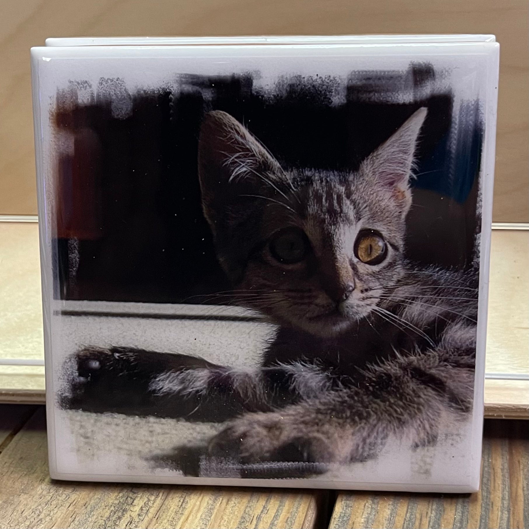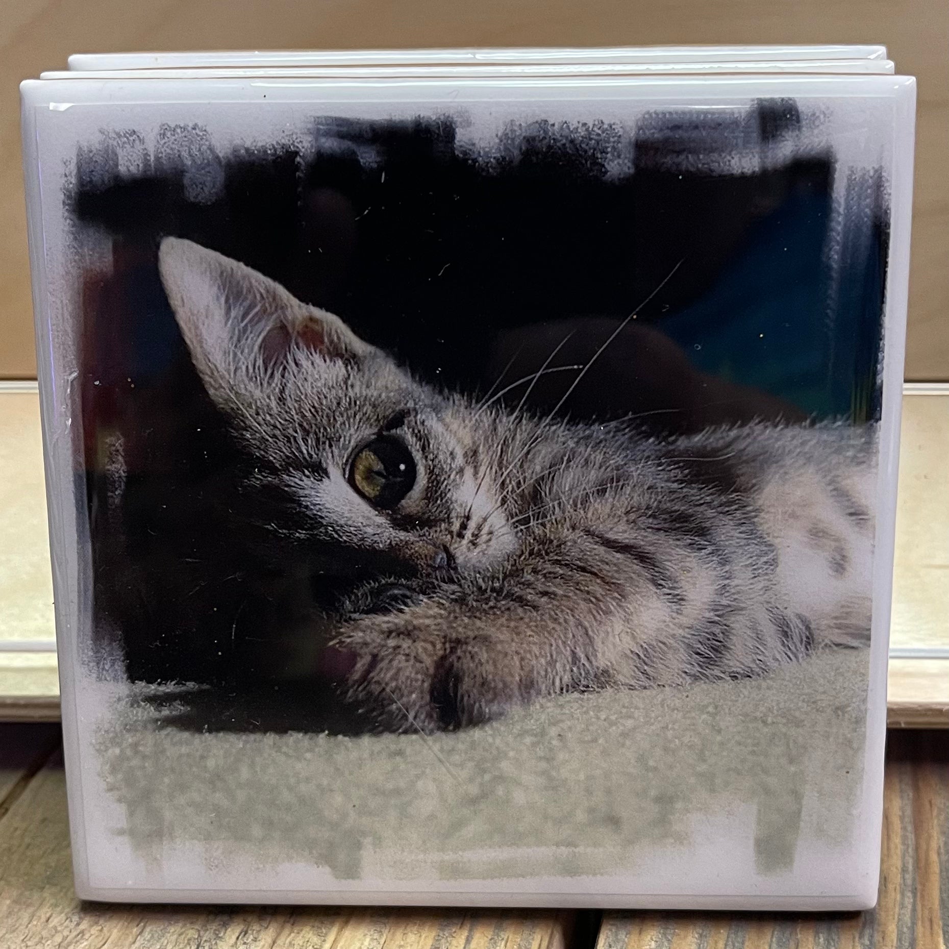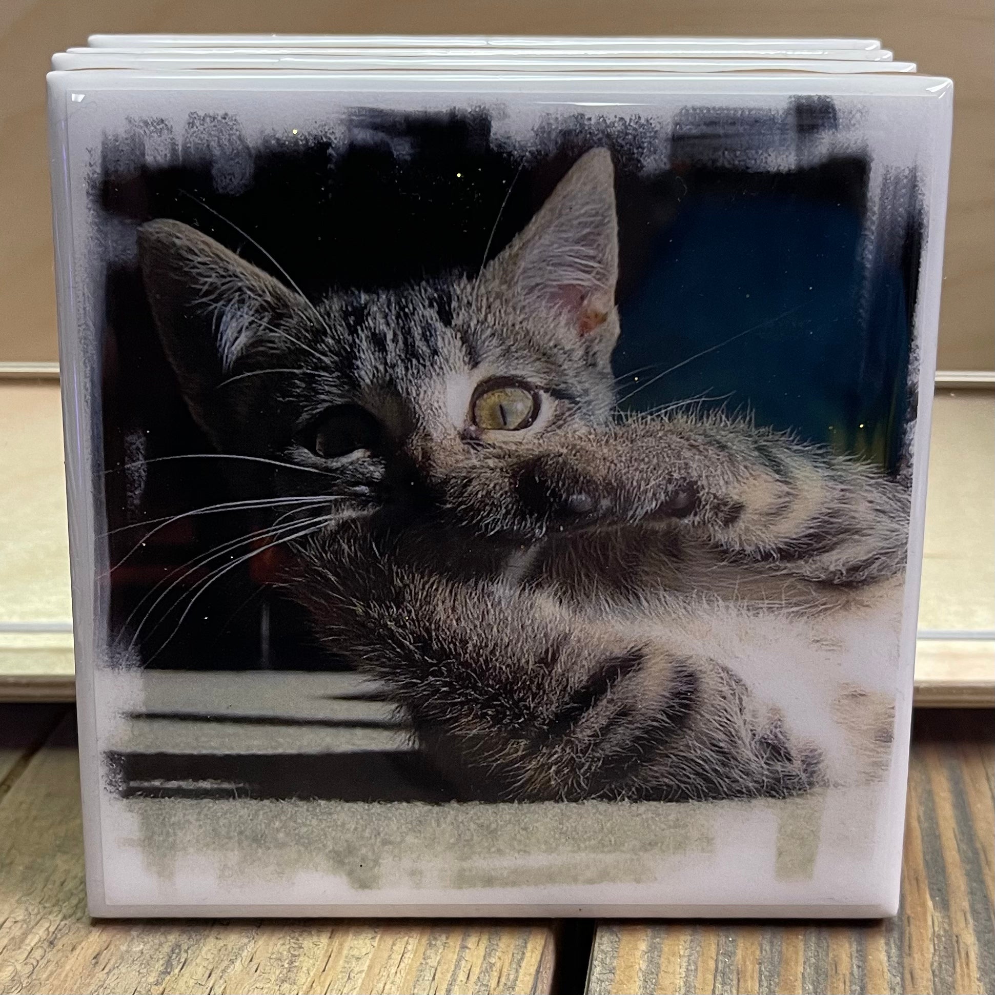 These hand made art tiles can be displayed on easels or used as coasters. They are a wonderful way to add some creative design and color to your home, as well as protect your tabletops.