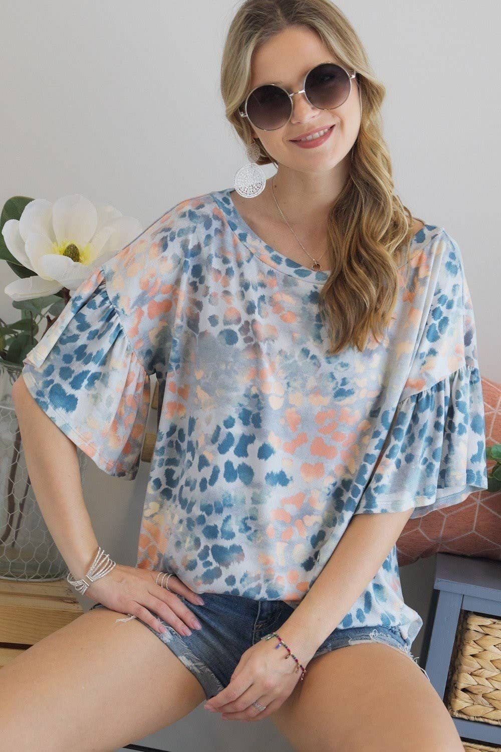 MYT14029C - BOAT VECK 1/2 RUFFLE SLEEVE COLOR BLOCK TOP