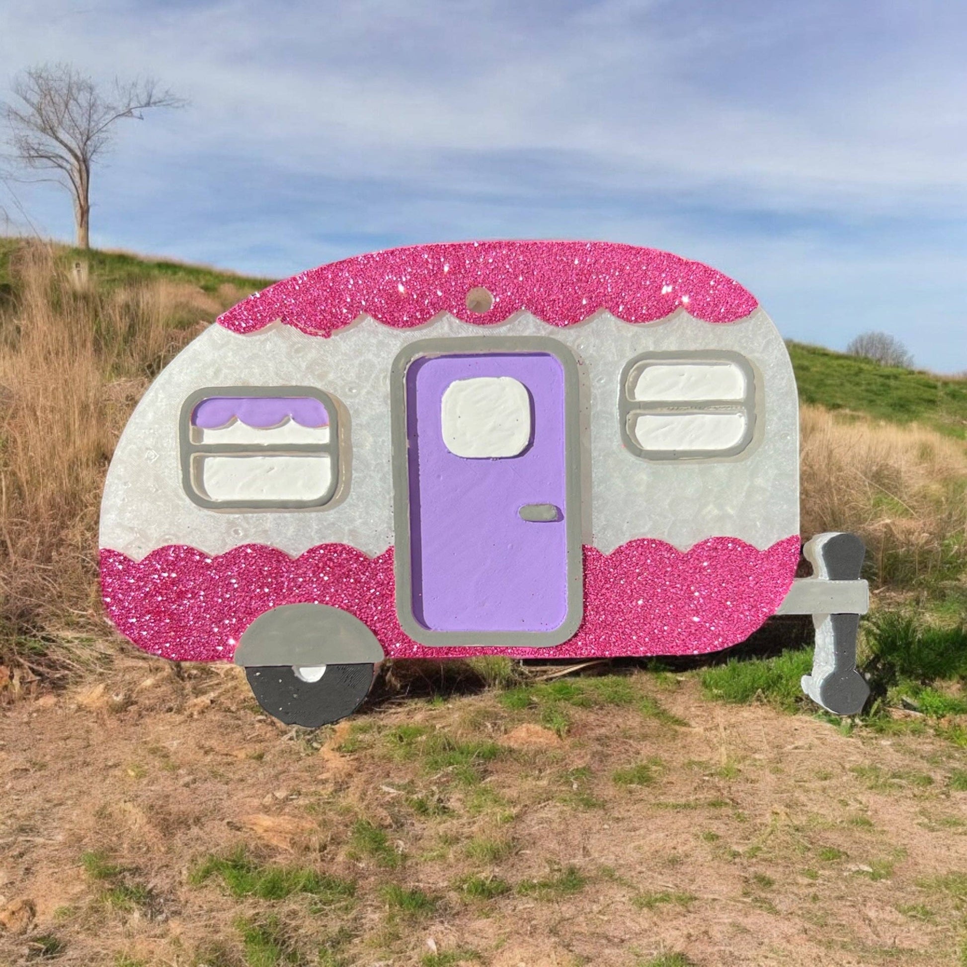 Rev up your road trip with the Pink Camper Freshie! This quirky air freshener features cool pink and purple hues that will freshen up your camper, car, or home with style. No more stale smells on your adventures. (Scent-sational!)