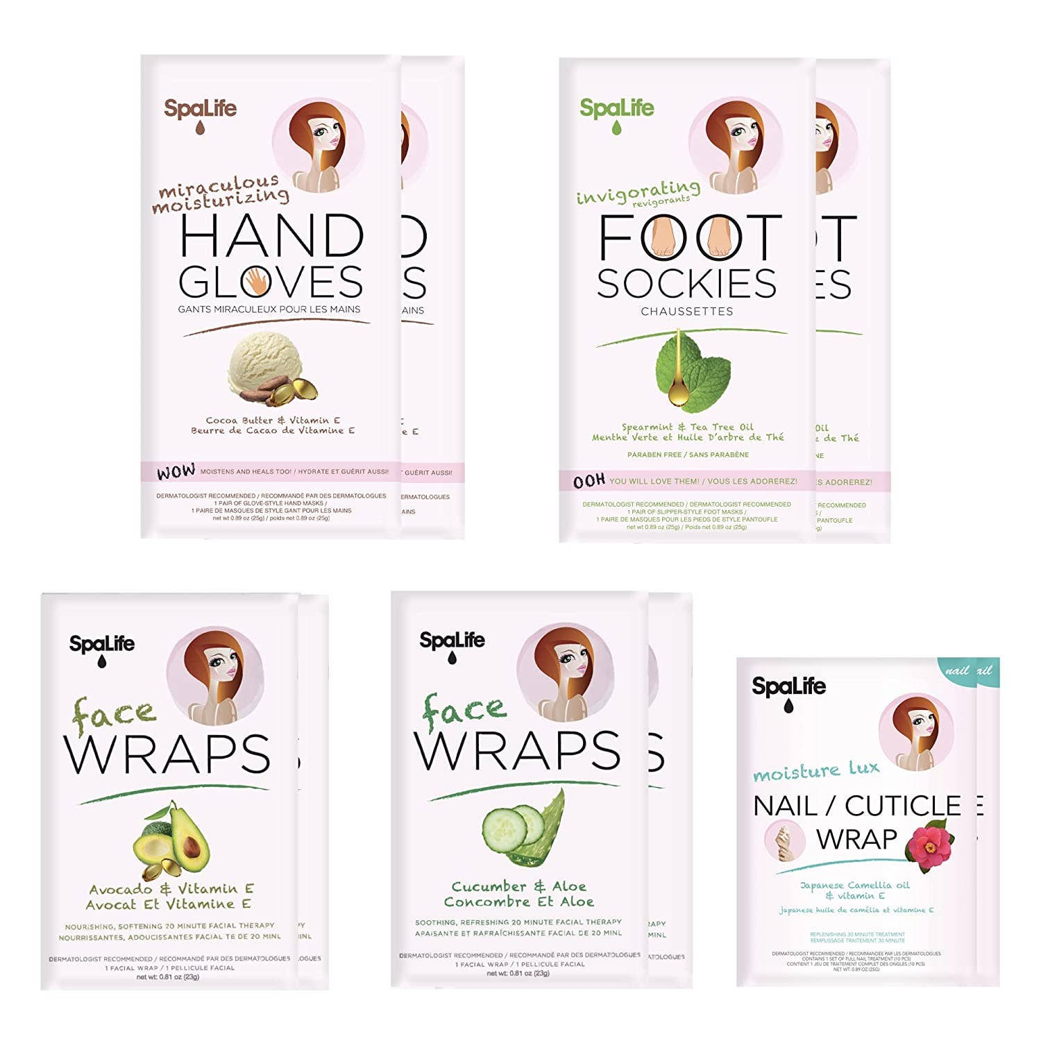 AT-HOME SPA TREATMENT. Treat yourself to some much-needed “me” time with a soothing, refreshing facial without ever stepping foot in the spa. Pick one you need or get the whole set for a spa experience! They will moisturize your skin to minimize fine lines and wrinkles, delivering a healthier complexion and smooth skin. Choose between cucumber aloe face wraps, avocado vitamin e face wraps, moisturizing hand gloves, invigorating foot sockies, and two sets of cutucle wraps REPAIR DAMAGED NAILS -Effectively repair damaged nails after manicure. HYDRATING CUCUMBER. Abundant in vitamins and minerals, cucumber extract boasts powerful, rejuvenating properties. It helps to rehydrate skin to keep wrinkles at bay and also has the ability to even out the complexion with healthy skin. AVOCADO - Revitalizes skin, helps retain moisture for radiance and natural glow. Nourishes and balances to sooth and refresh dry or sensitive skin.