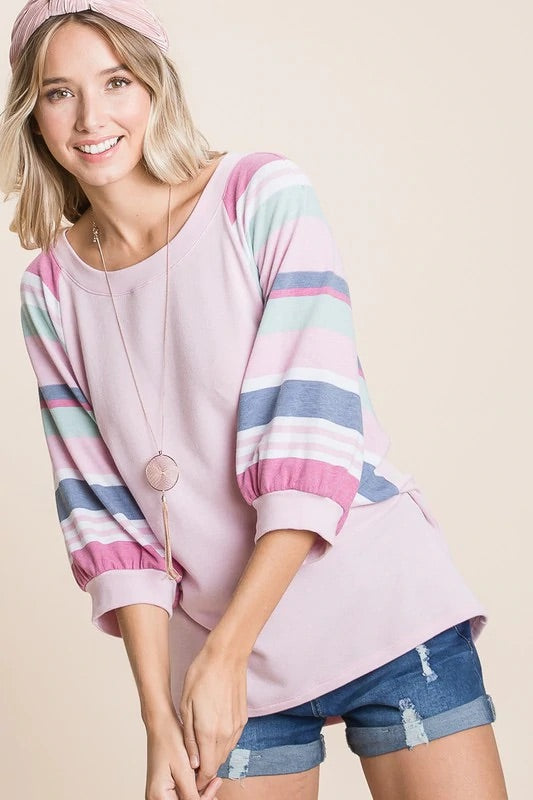 Super cute puffed sleeve top! Amazing spring colors! So soft and comfy with good stretch!