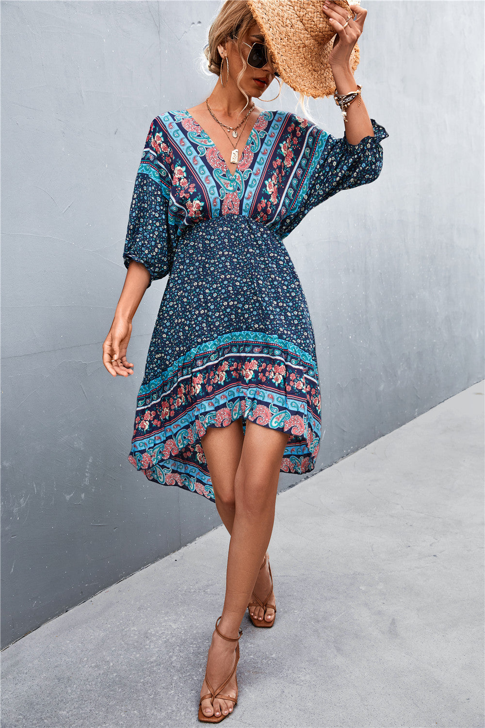 Printed Bohemian V Neck Dress