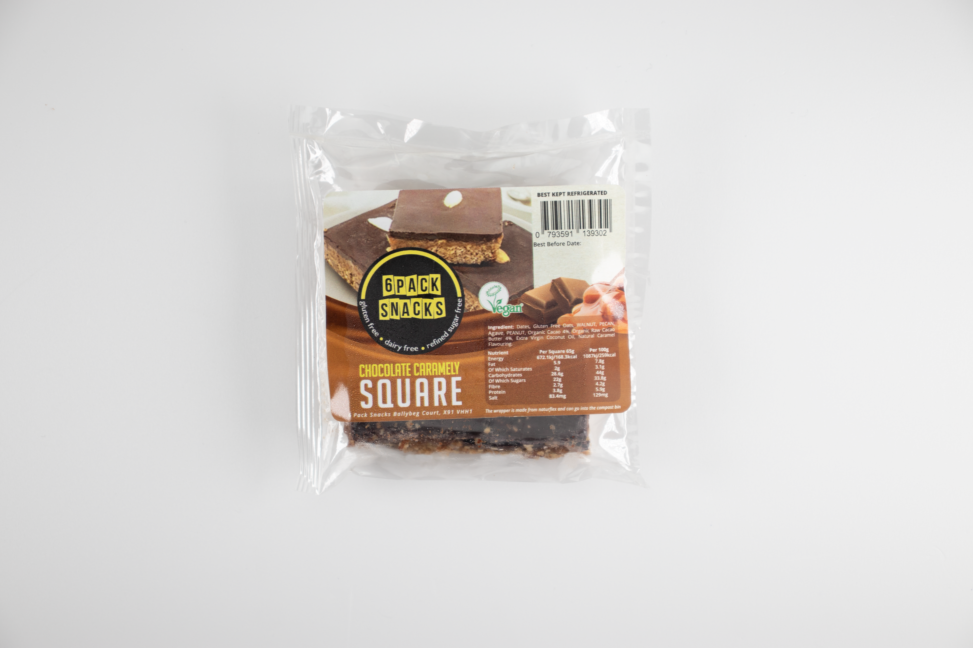 Nutty biscuit base, signature 6 pack snacks caramel sauce core and chocolate shell. This is our original and best selling snack.