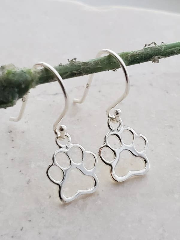 Pet Lovers Rejoice! These adorable sterling silver dog paw print in open design are lightweight and easy to wear. Perfect gift to any cat or dog parents.