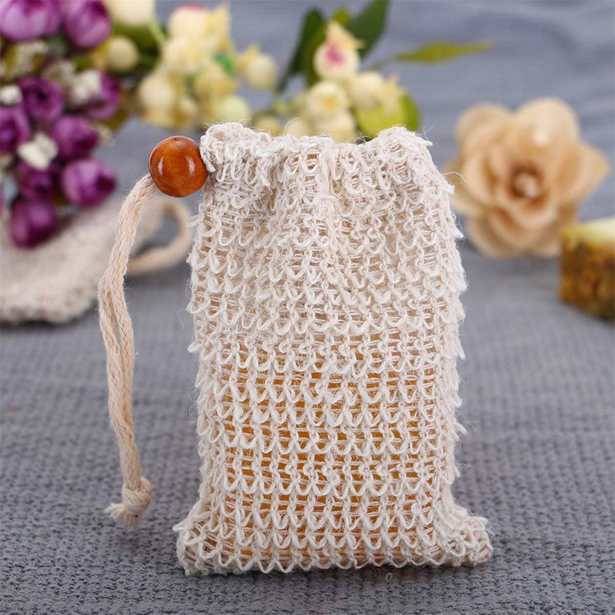 Sisal soap bag with beaded drawstring. Approx 4"x5"
