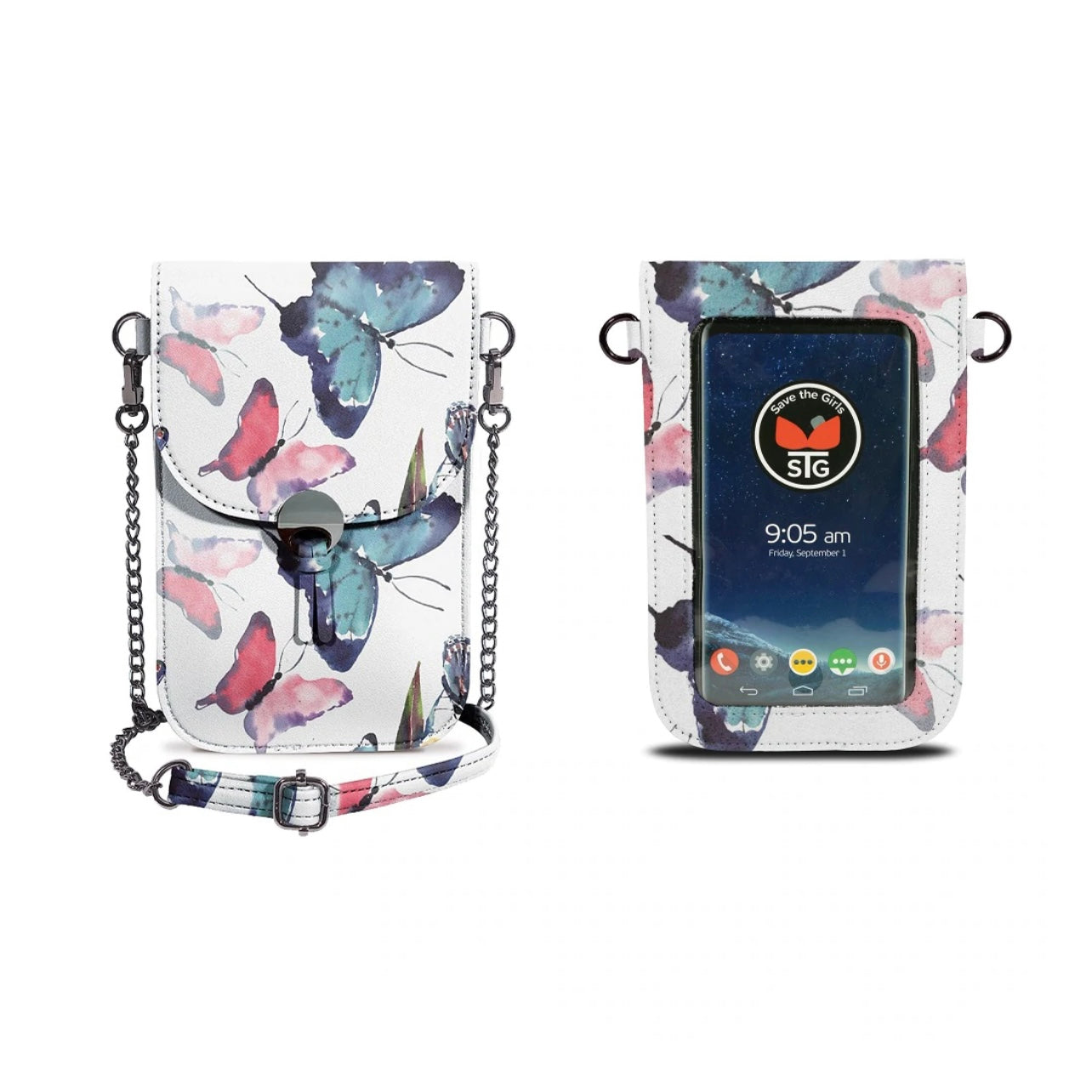 Classy and light-weight, featuring (3) credit card slots and a stylish chain shoulder strap designed for maximum comfort! *Stadium Approved Sizing*