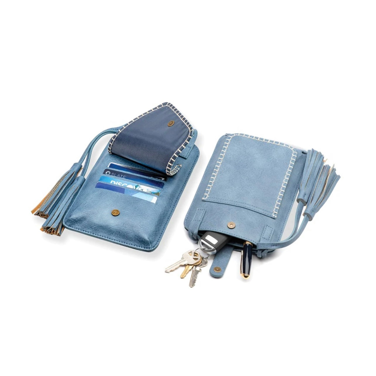 This free and breezy design, offers (4) easy to access credit card slots; securely hidden under the stylish whipstitched front flap! The extra deep interior pocket holds your keys, cash, and other essential items. Made of durable Vegan Leather in an array of beautiful colors!