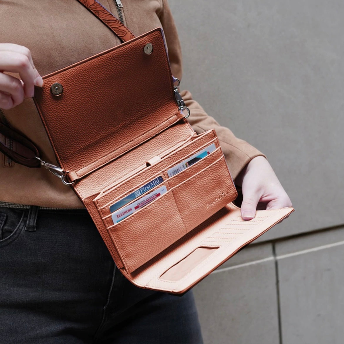 - Zippered change and cash pocket