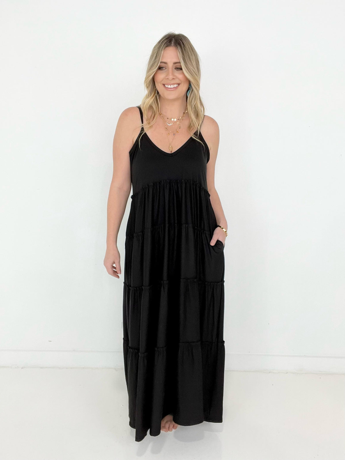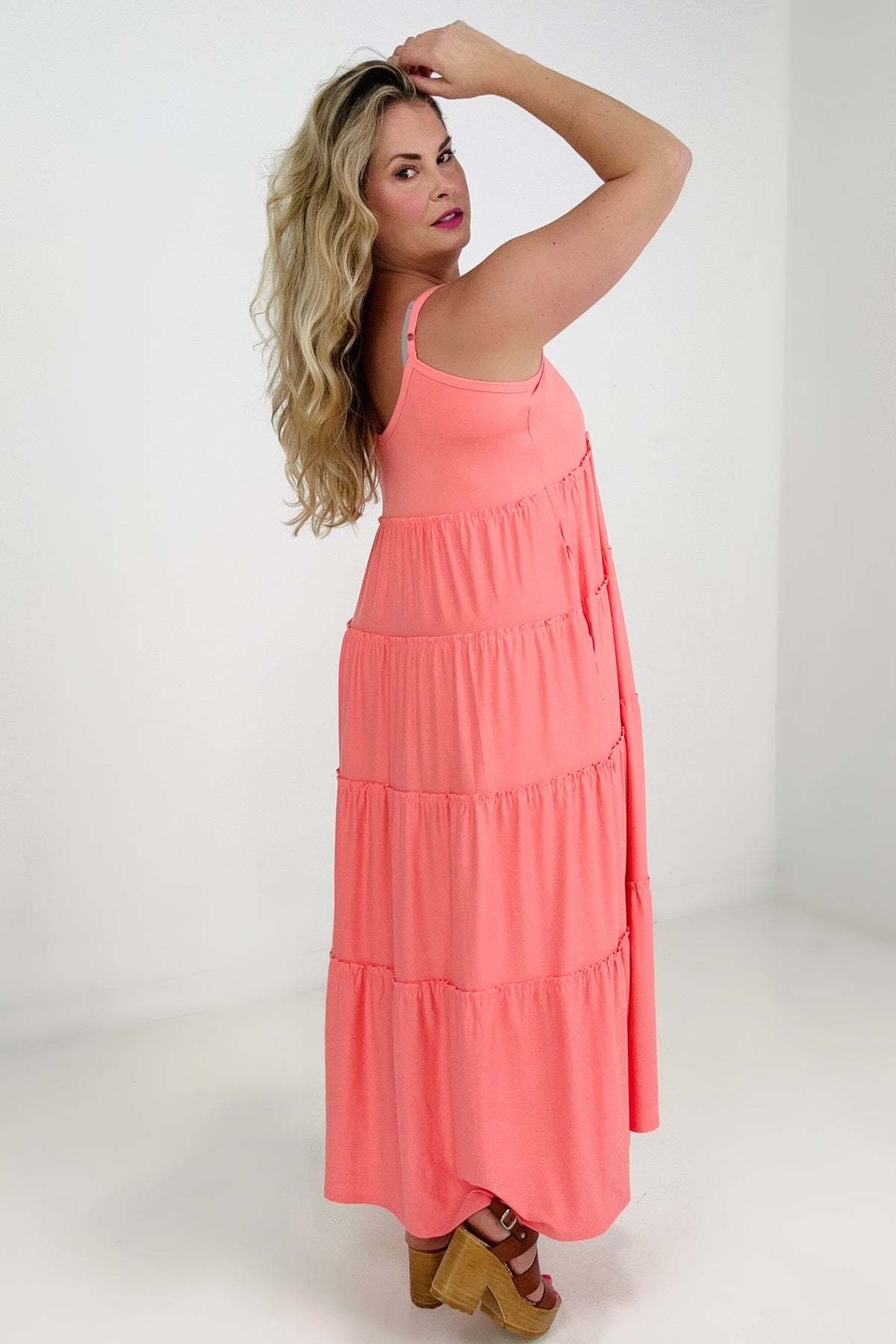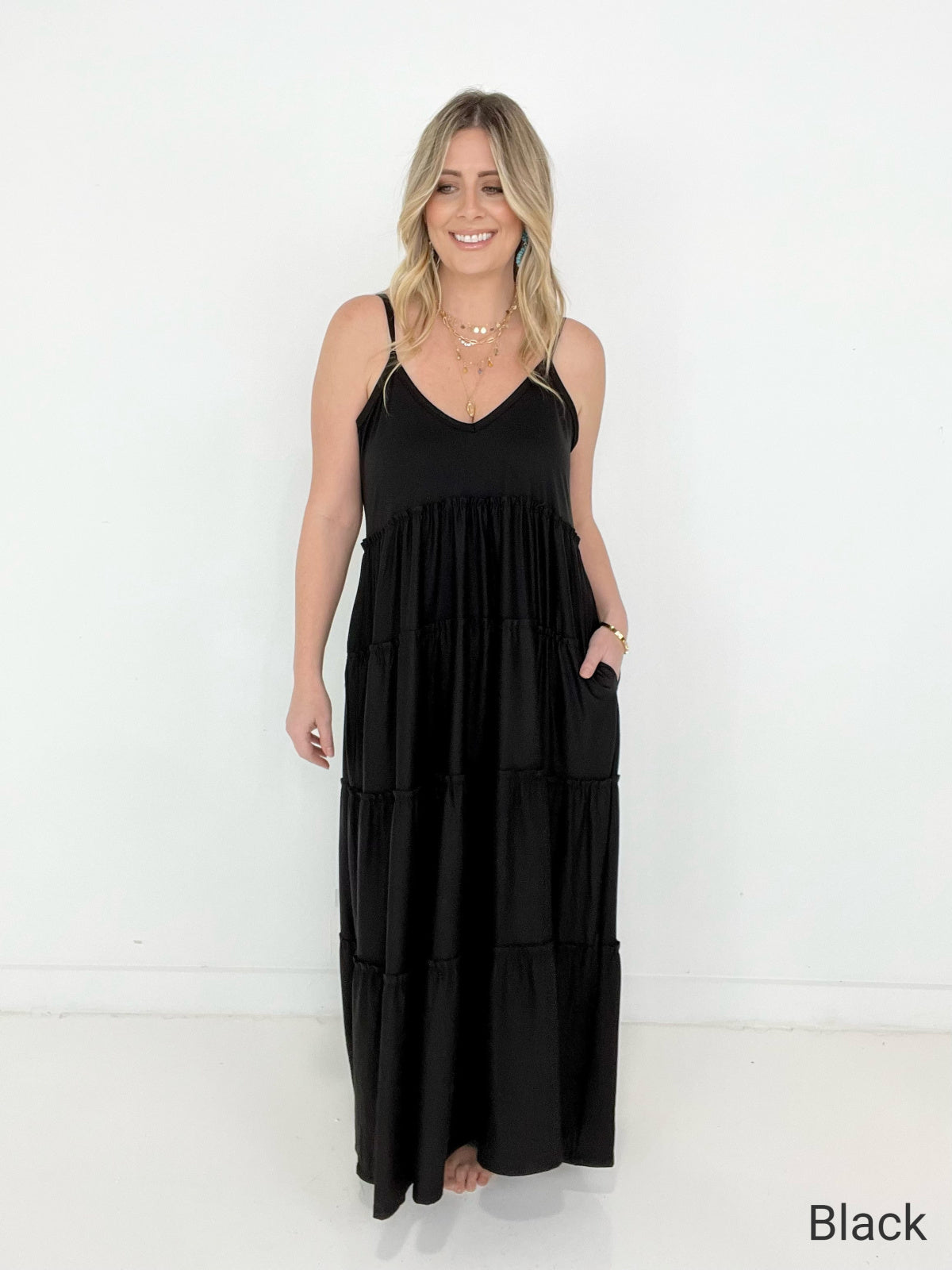 New Colors - Zenana V-Neck Cami Maxi Tiered Dress with Side Pockets